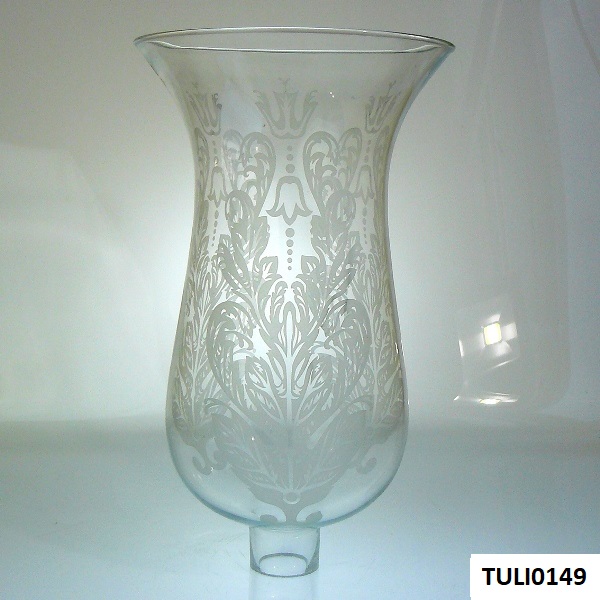 Tulipa cristal Paso Semana Santa dibujo palmera grande 14cmØ x 23.5cm↕. También se hace con dibujo antiguo y transparente. El diámetro de la boca es de 5.3cmØ