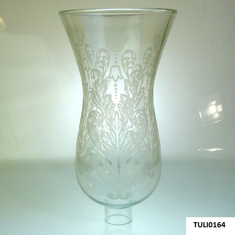 Tulipa cristal Guardabrisas Calca Antigua de 14cmØ x 27cm↕. También se hace con dibujo Palmera y transparente.