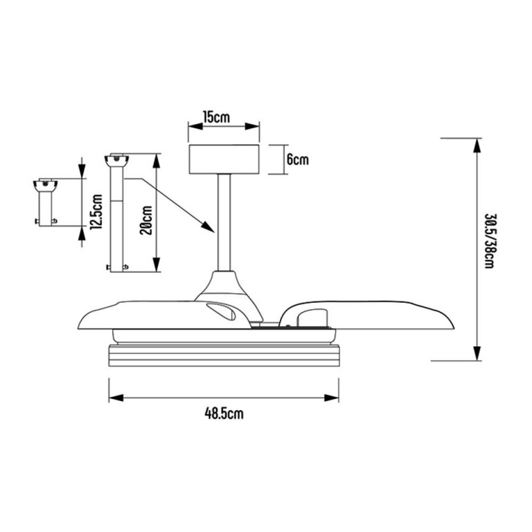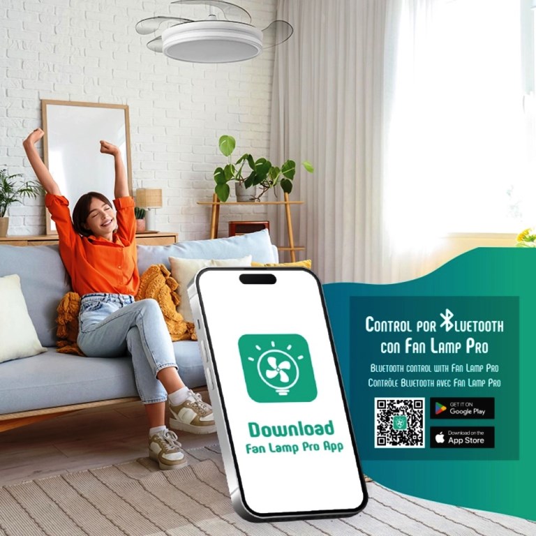 Incorpora módulo LED de 30W y 3800 lúmenes, ajustable tanto en intensidad como en temperatura de color, permitiendo adaptar la iluminación según el ambiente deseado. Además, incorpora control por Bluetooth mediante la app Fan Lamp Pro, facilitando su gestión desde el móvil.