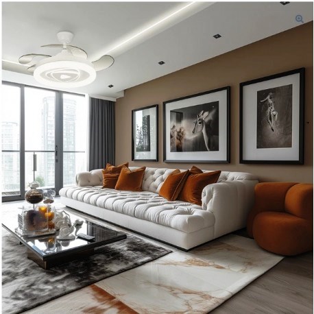 Oficinas y espacios de trabajo: Su motor DC ultra silencioso permite mantener un ambiente tranquilo y productivo, mientras que su diseño contemporáneo añade un toque estético profesional.